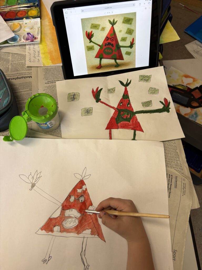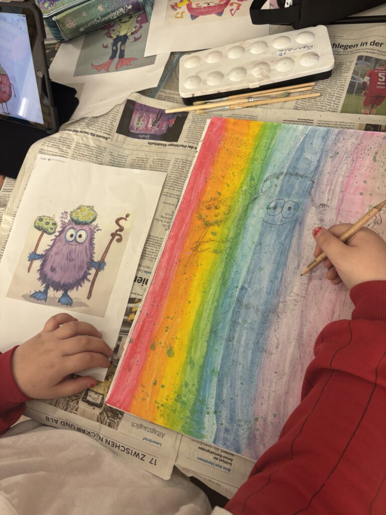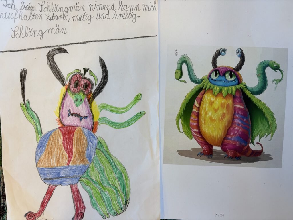Die Klasse 2b hat sich in den vergangenen Wochen auf eine ganz besondere künstlerische Reise begeben: In einem einzigartigen Kunstprojekt erschufen die Schülerinnen und Schüler fantasievolle Monster – und arbeiteten dabei mit künstlicher Intelligenz zusammen.